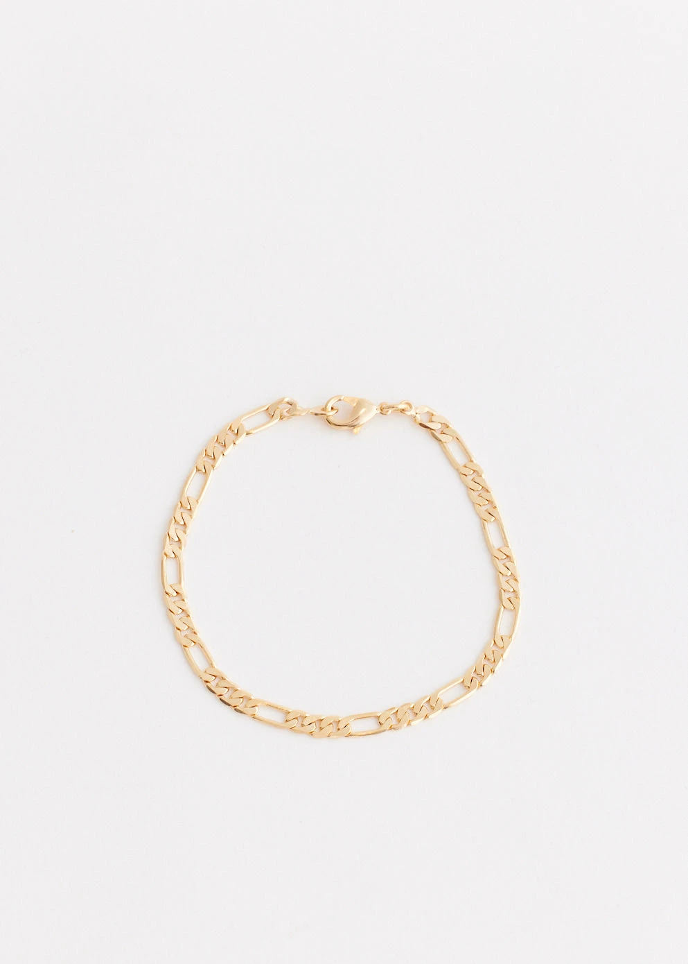 Curated to exude confidence and energy, Incu presents their ‘Incu Jewellery’ collection. Enhance your uniqueness with these vibrant and dynamic pieces for a timeless aesthetic. Crafted in 18k gold-plating, the Tatum Bracelet is designed with a classic figaro link pattern.