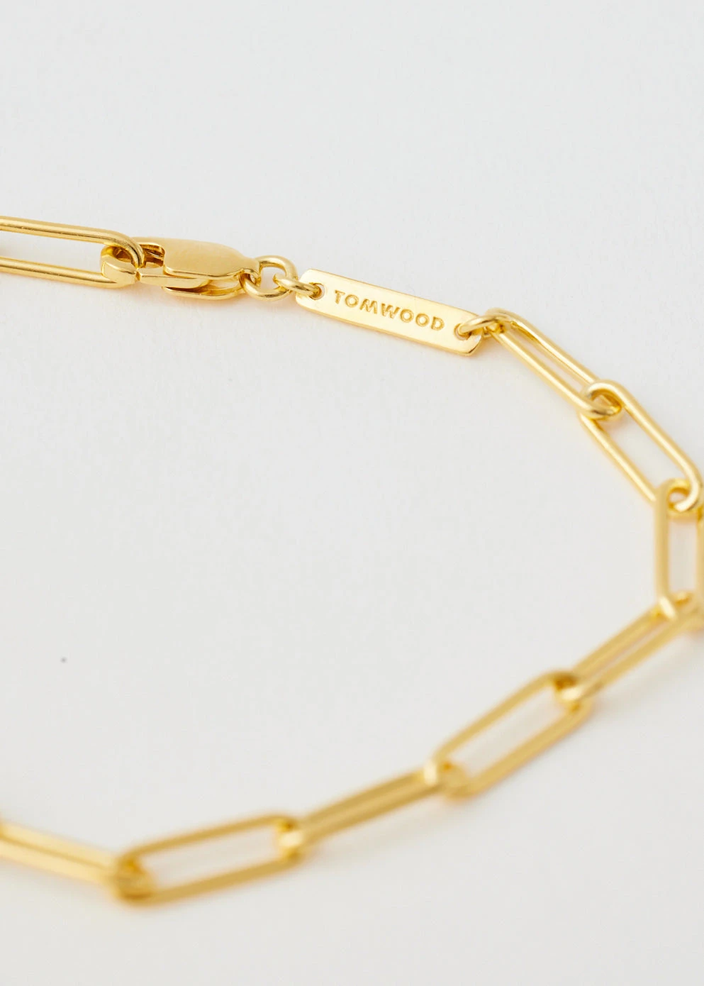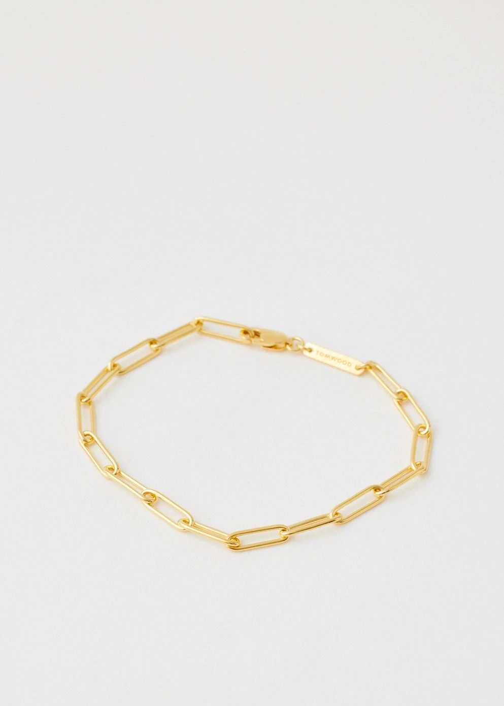 Based in Oslo, Tom Wood is a Norwegian jewellery label that embraces timeless yet functional design. Founder Mona Jensen creates small collections of unisex styles using 925 sterling silver and 9-carat gold, as well as semi-precious stones. The Box Bracelet is made from 9k gold plated 925 sterling silver.