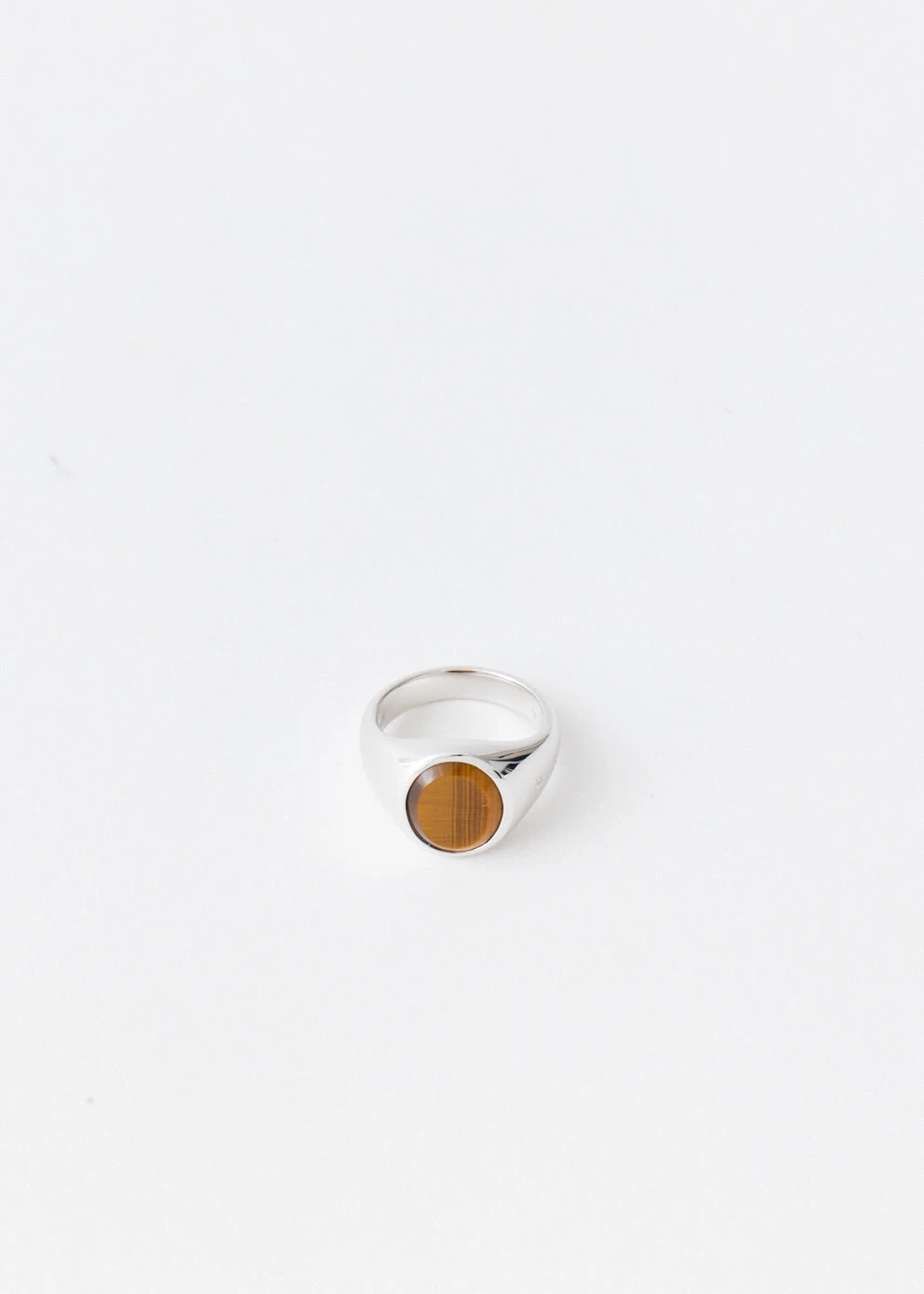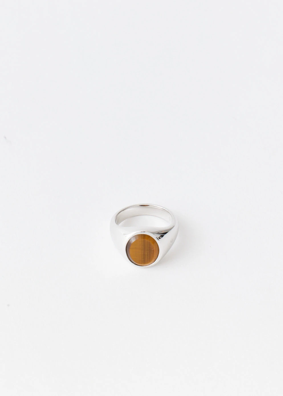 Based in Oslo, Tom Wood is a Norwegian jewellery label that embraces timeless yet functional design. Crafted with sterling silver, the Lizzie Ring Tiger Eye is a classic signet ring style boasting a bezel set tiger eye stone. It’s coated with white rhodium plating, which protects the surface and resists oxidation.