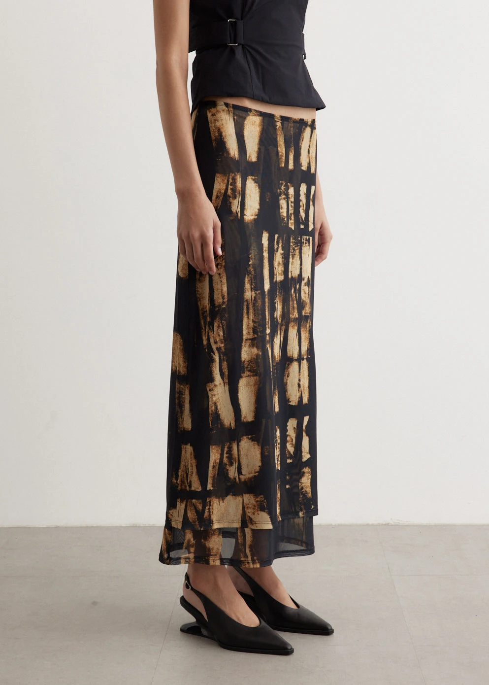 MIAOU was born where French-girl style meets Southern California-cool. The label takes vintage silhouettes and turns them into elevated, contemporary garments which echo supermodel style from the ’90s. Crafted from a mesh blend, the Topanga Skirt is tailored to a slim, maxi-length. Adorned with an all-over print and layered design.