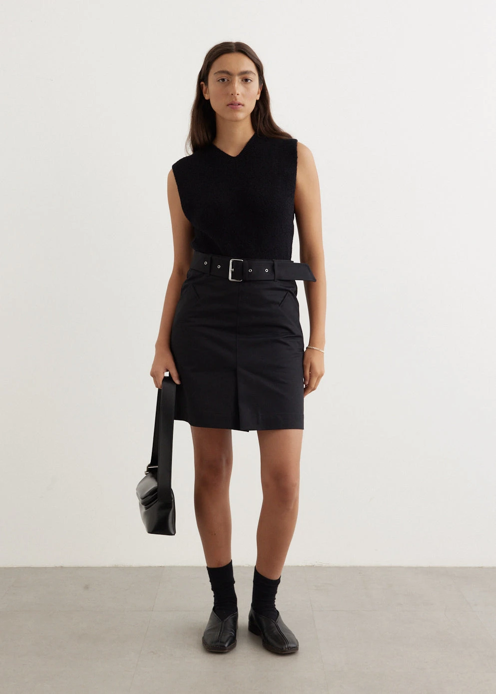 Founded in 2014 by Elin Kling and Karl Lindman, Toteme is a Stockholm-based brand renowned for crafting elevated essentials and timeless wardrobe foundations. Crafted from a compact cotton, the Cotton Trench Skirt is tailored to a mid-thigh length. Detailed with a detachable wide belt and welt pockets. Fastening with a concealed back zipper.