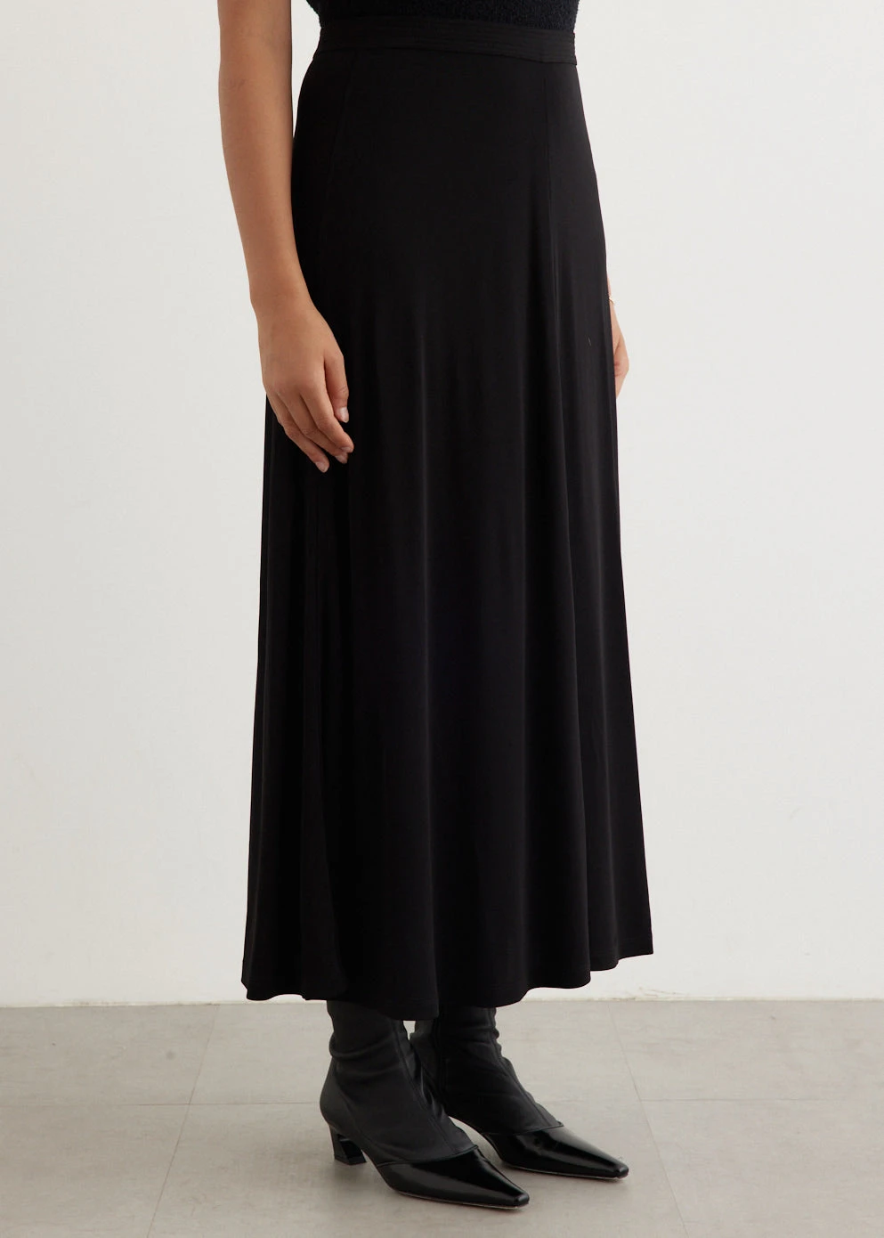Founded in 2014 by Elin Kling and Karl Lindman, Toteme is a Stockholm-based brand renowned for crafting elevated essentials and timeless wardrobe foundations. Crafted from a fluid, mid-weight jersey fabric, the Fluid-Sleeve Jersey Skirt is a wardrobe must have. Boasting topstitching along the waistband and fastened with a back zipper.