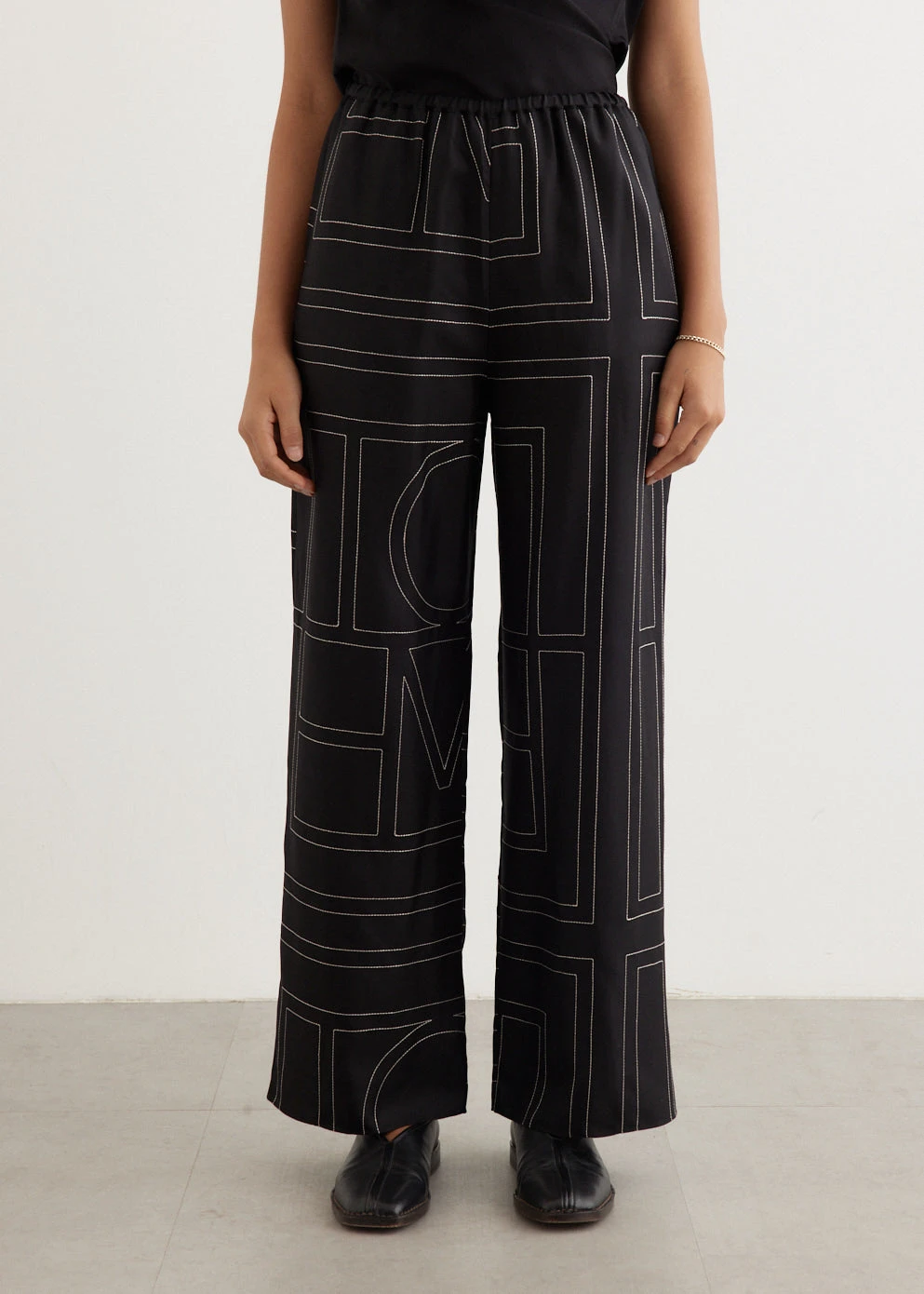 Founded in 2014 by Elin Kling and Karl Lindman, Toteme is a Stockholm-based brand renowned for crafting elevated essentials and timeless wardrobe foundations. Crafted from a fluid silk twill, the Monogram Silk Pyjama Pants are tailored to a relax fit. Adorned with an all-over monogram pattern, for the perfect brand finish.