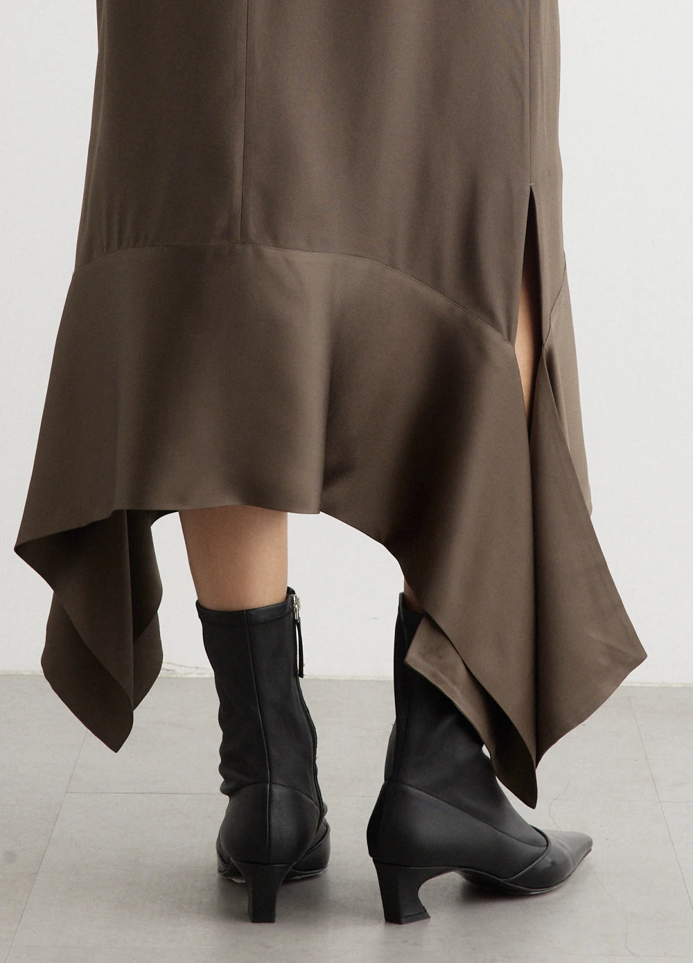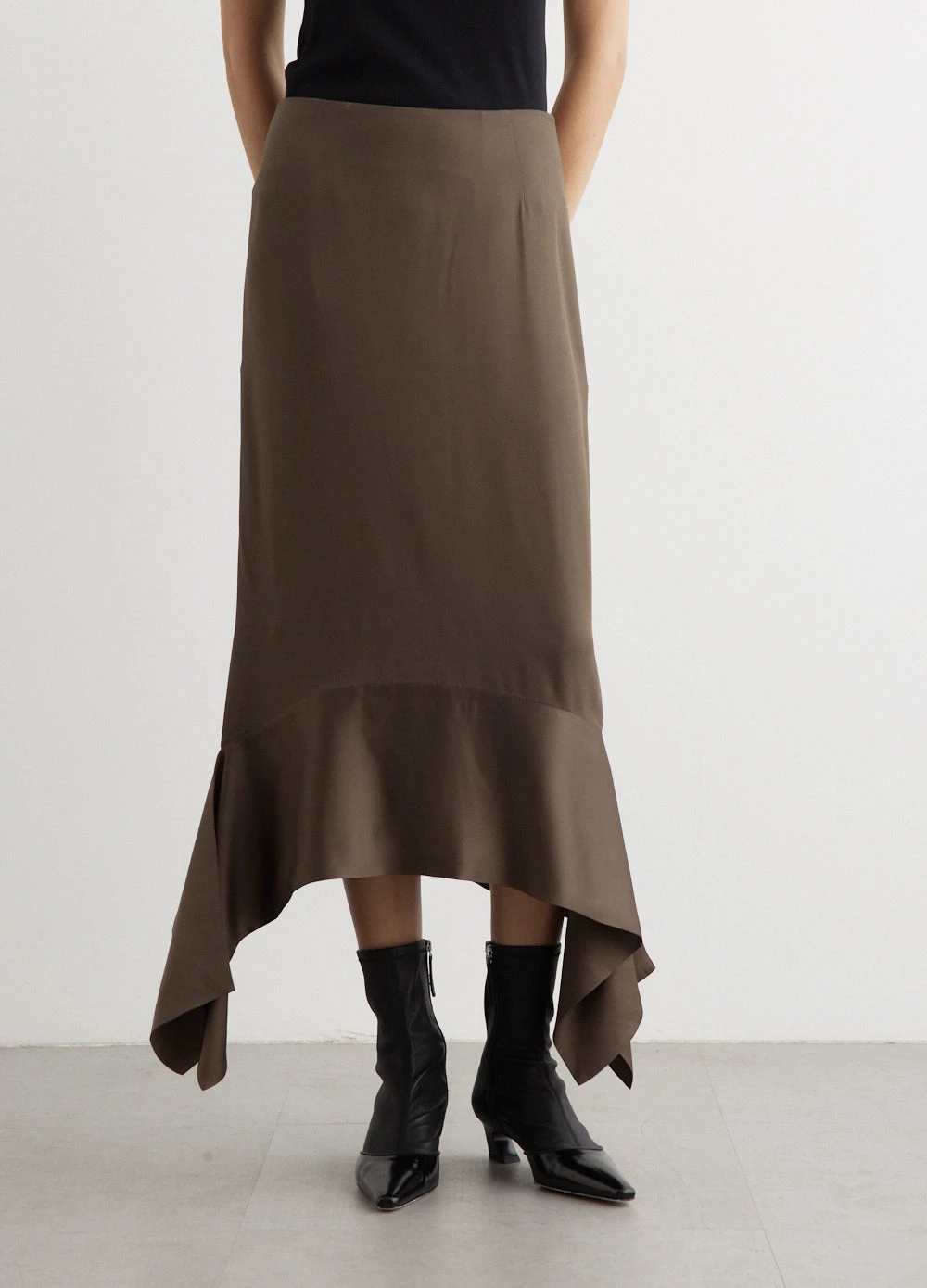 Founded in 2014 by Elin Kling and Karl Lindman, Toteme is a Stockholm-based brand renowned for crafting elevated essentials and timeless wardrobe foundations. Made from a fluid satin crepe, the Satin-Sash Crepe Skirt is a midi-length skirt that features an asymmetrical hem.Â