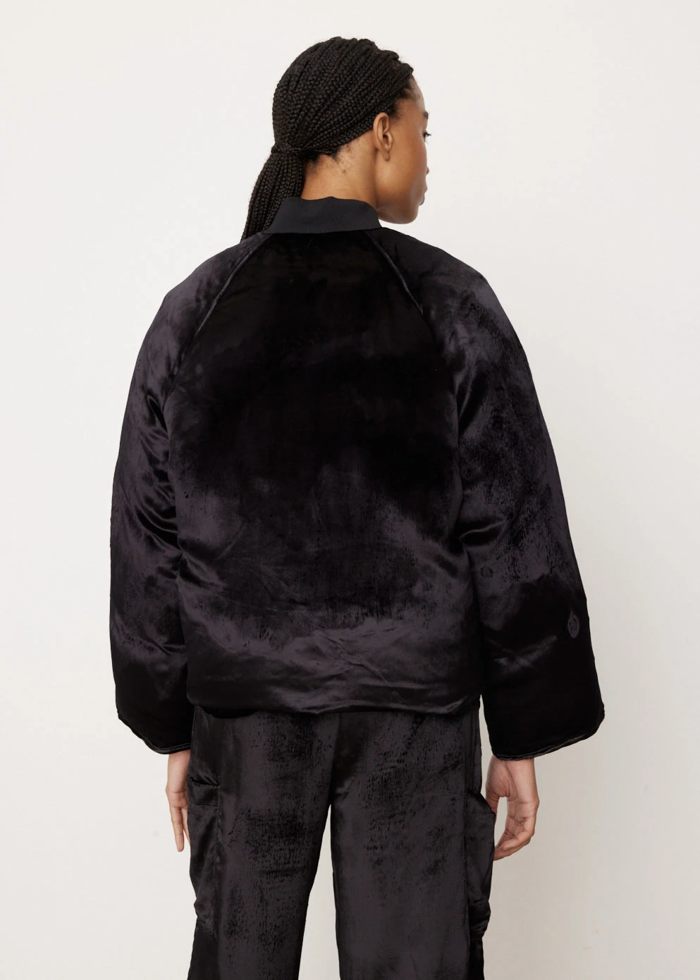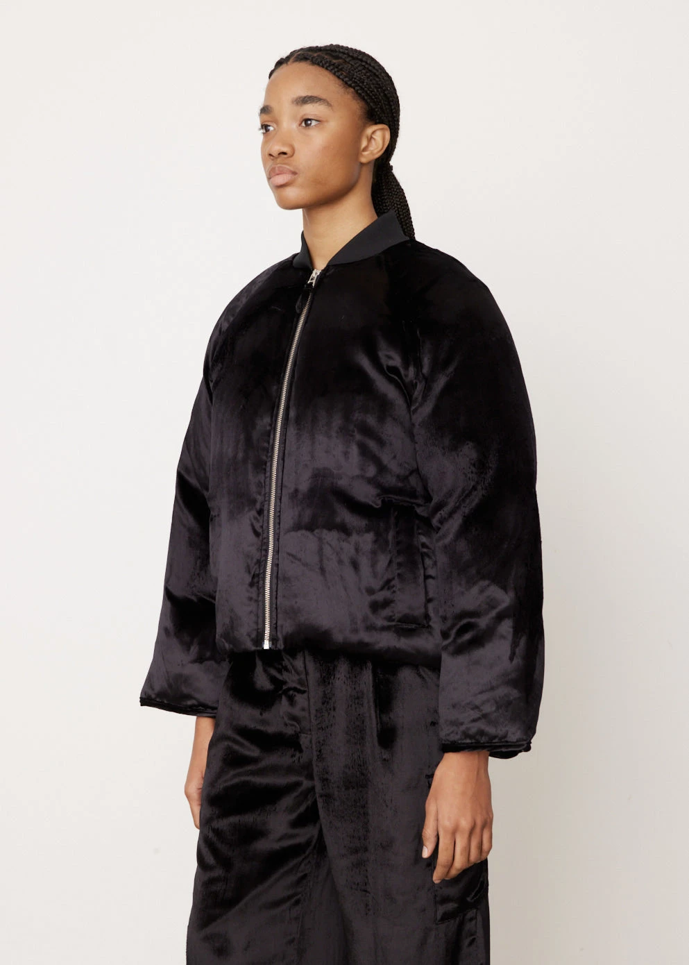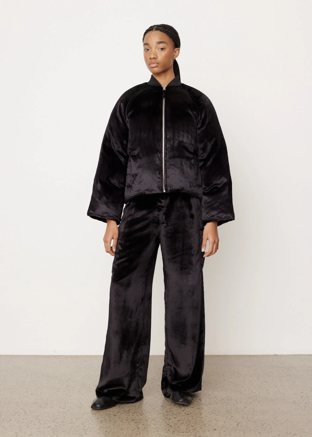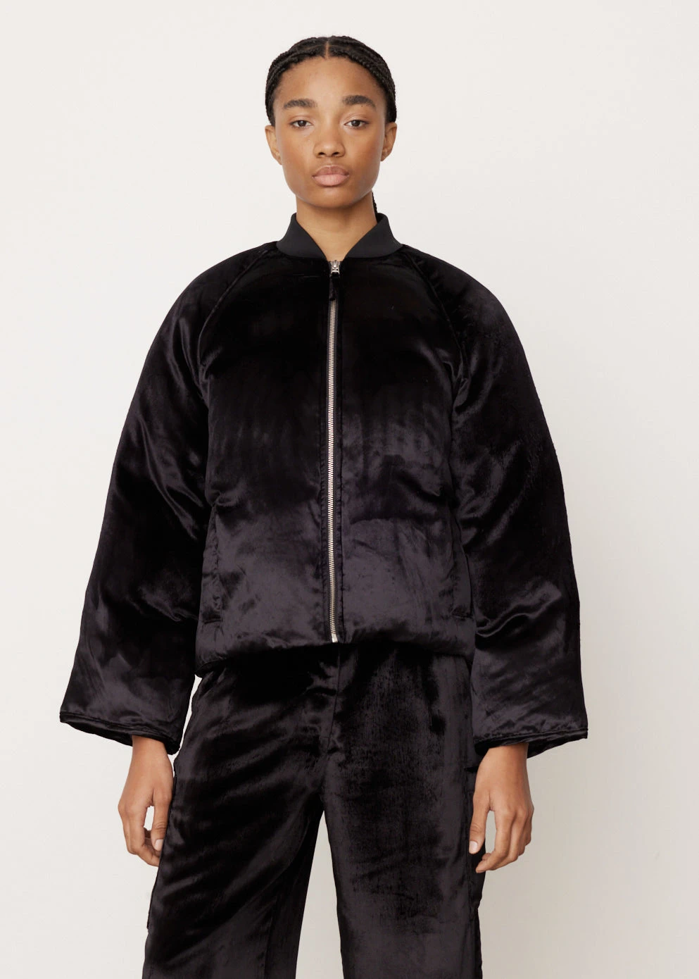 Founded by Parisian influencer Chloé Harrouche, LOULOU STUDIO has a repertoire that consists of classic silhouettes and distinguished fabrics. The collections are full of soft neutrals and careful tailoring. Crafted from a soft viscose blend, the Velvet Bomber Jacket is tailored to a straight cut and features long raglan sleeves. Finished with a side welt pockets, zipper fastening chest and flat collar.