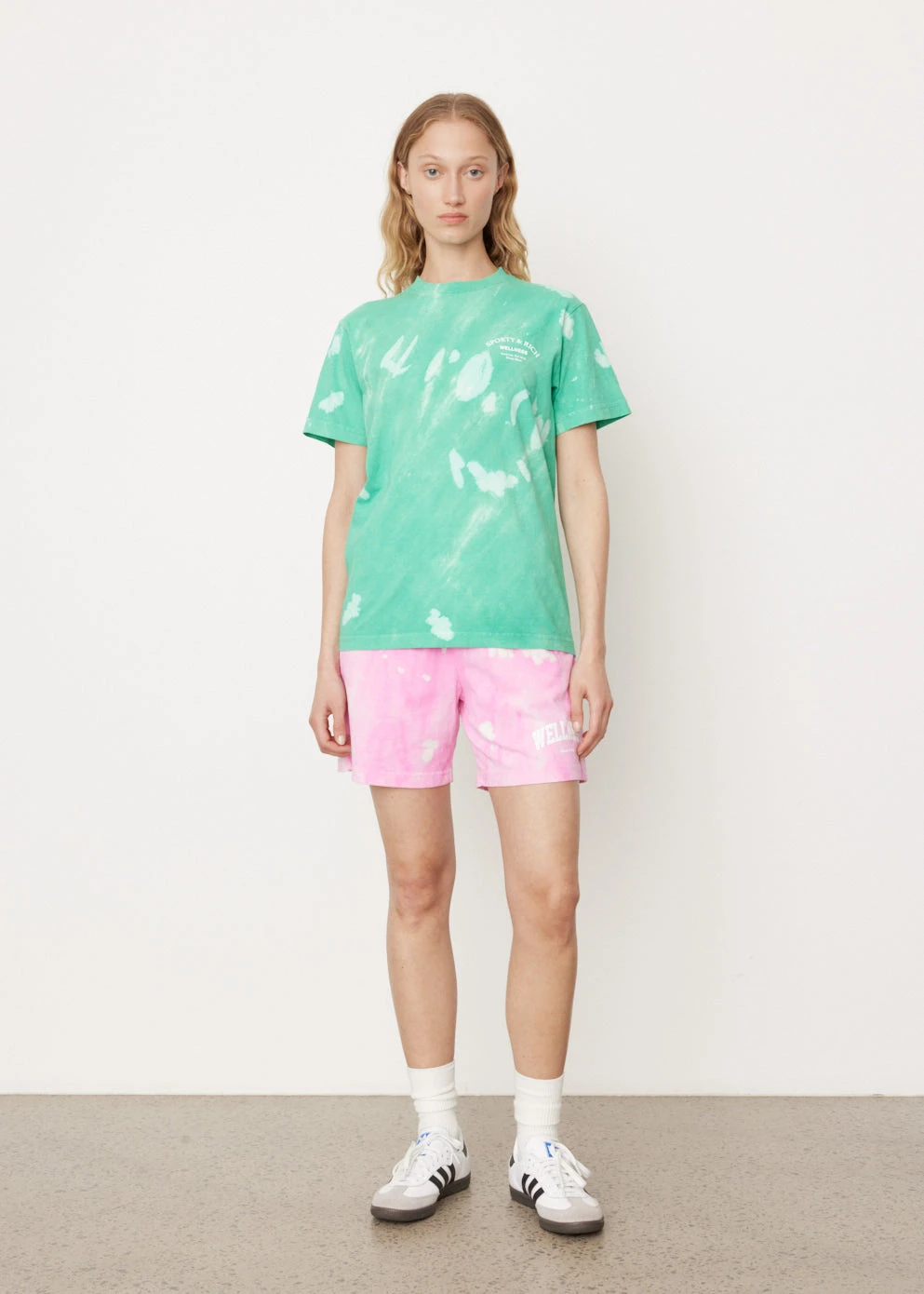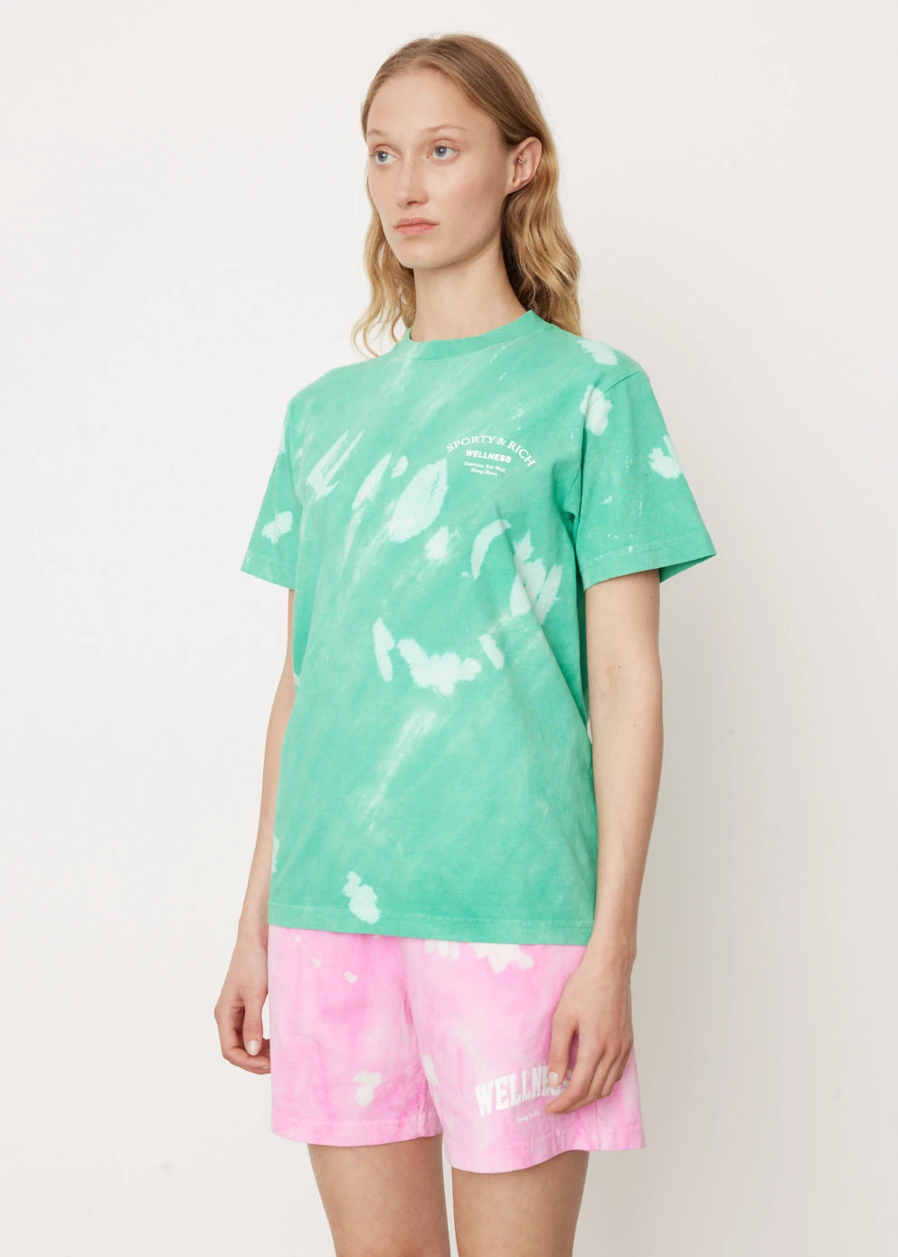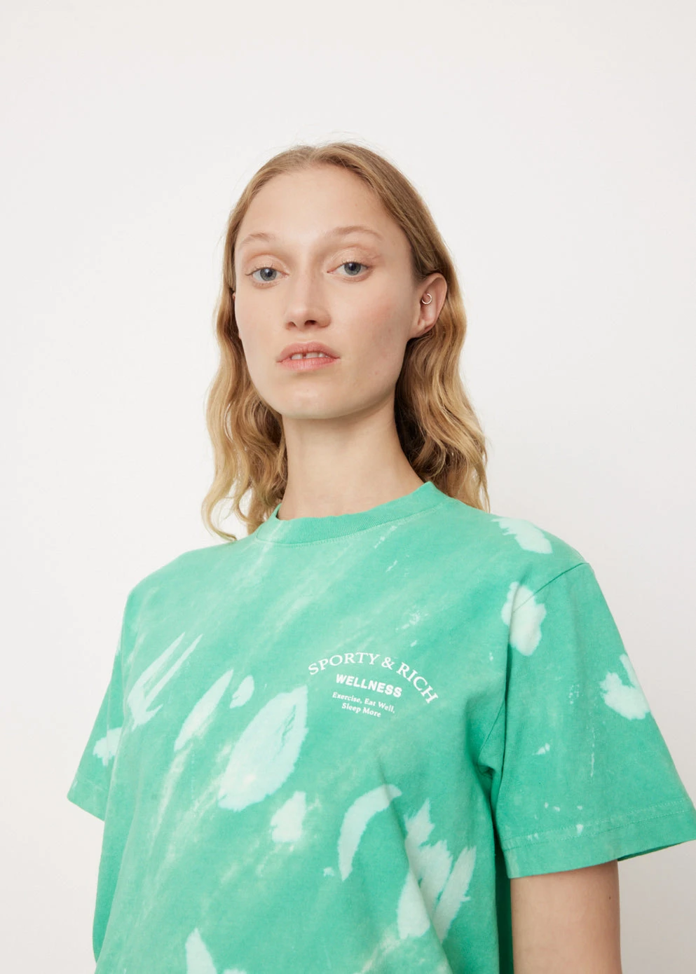 All about health and wellness, Sporty & Rich is the Los Angeles-based label that prides itself on sustainability, quality and a distinct ’90s-inspired sports aesthetic. The Wellness Studio Tie Dye T-Shirt has a loose fit and a branded ‘Wellness Studio’ logo print on the front and back.